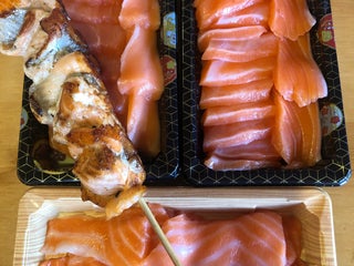 Pre-cut salmon sashimi in different quantities at reasonable prices.