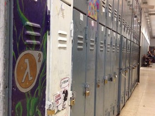 En muchas paredes los alumnos dejan pinturas y dibujos, las taquillas más de lo mismo, zonas de estudio libre más allá de la biblioteca y un ambiente desenfadado muy agradable. Falta mantenimiento.