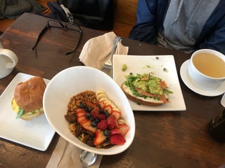 ❤️ Lots of healthy options: smoothies, chia bowls, etc. plus indulgent items like grilled cheese, too. Cozy and warm environment (versus typical, sterile coffee shops). Nice staff. Good WiFi to work.