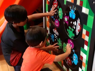 Muitos painéis de autoatendimento. Play para crianças pequenas (até 8 anos). Mas a fila para retirada do pedido costuma ser grande.