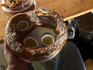 Get the schnitzel with spaetzle and a 1L beer. Beer comes in all sizes including a boot and growler.