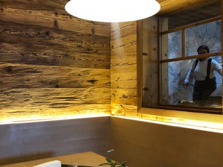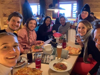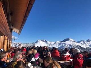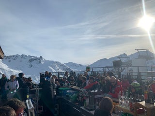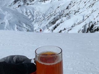 Nice view, modern wooden architecture, but quite expensive. Pizza starts at 13€, beer 5€....