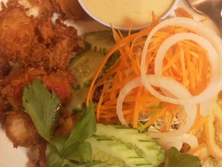 ข้าวผัดอินเดีย ผัดกับผงกะหรี่ใส่กาหยู กุ้งทอด