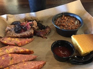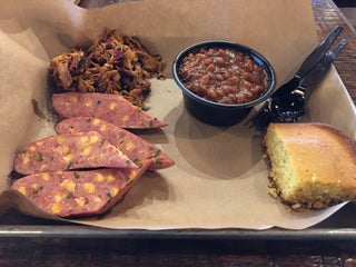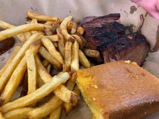 Pulled pork and beef brisket was good. Cornbread a bit dry.