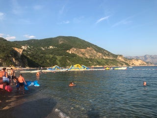 Good for kids with easy entrance to water unlike Budva's rocky beaches