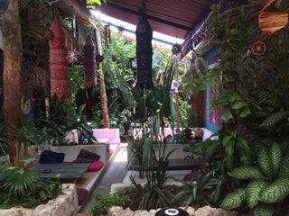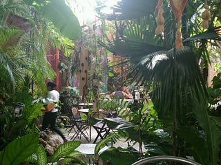 Beautiful outdoor courtyard which is good for chilling out. Tons of room options and vegan friendly menu.