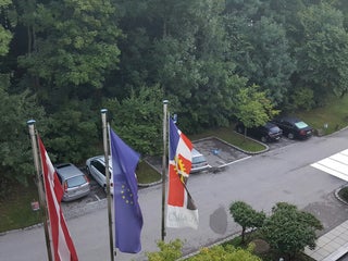 Un hotel situat intr-un parc, cu camere renovate recent, precum si cu un recepționer român foarte amabil. Raportul calitate-preț este foarte bun.