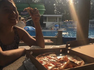 饭后休闲好地方,湖水碧波荡漾。