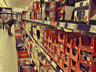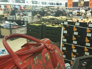 Lepiej weźcie ze sobą jakąś torbę - nie ma koszyków a wózki są ogromne, niewygodne i płatne.