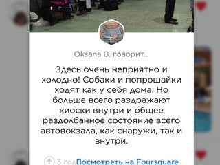 Уже второй раз в вокзале холодно, интересно, кто отвечает за это!? Автобусы за частую без отопление, хотя на улице еще минус. Водители не вежливые...нет ничего положительного от этого места.