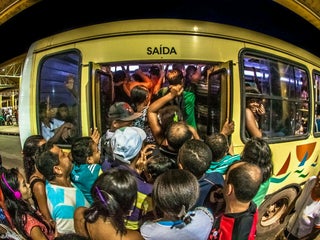 Uma loucura, muita gente, vários camelôs espalhados, ônibus sucateados e uma infraestrutura péssima de modo geral